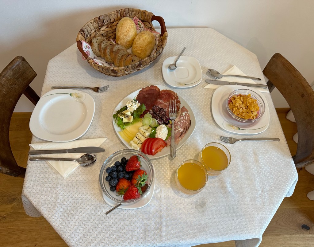 Petit déjeuné impérial, en plus des fruits, pains, charcuterie, fromage, confiture, jus, nous avons eu le droit à du pain perdu et des oeufs 😋